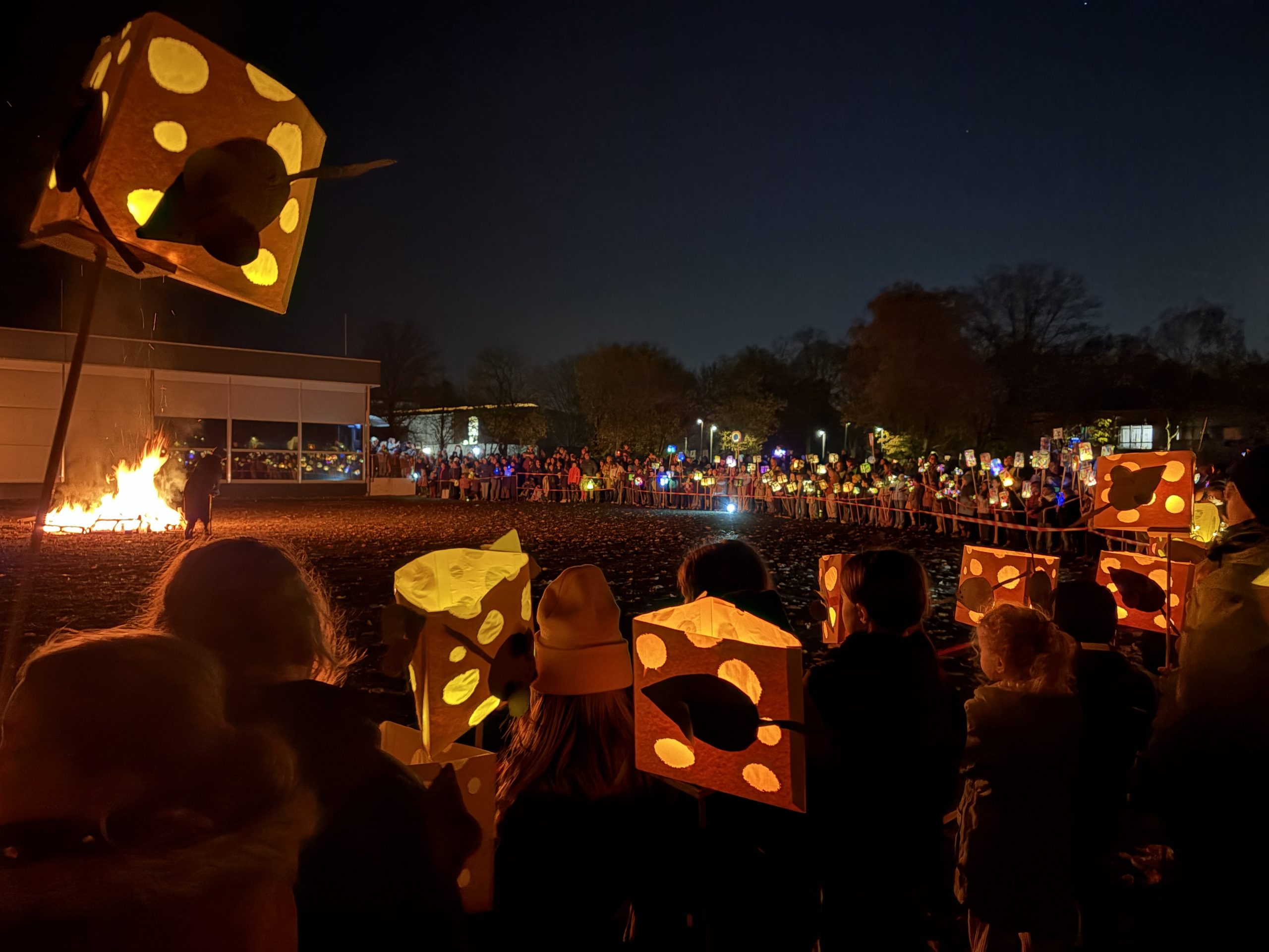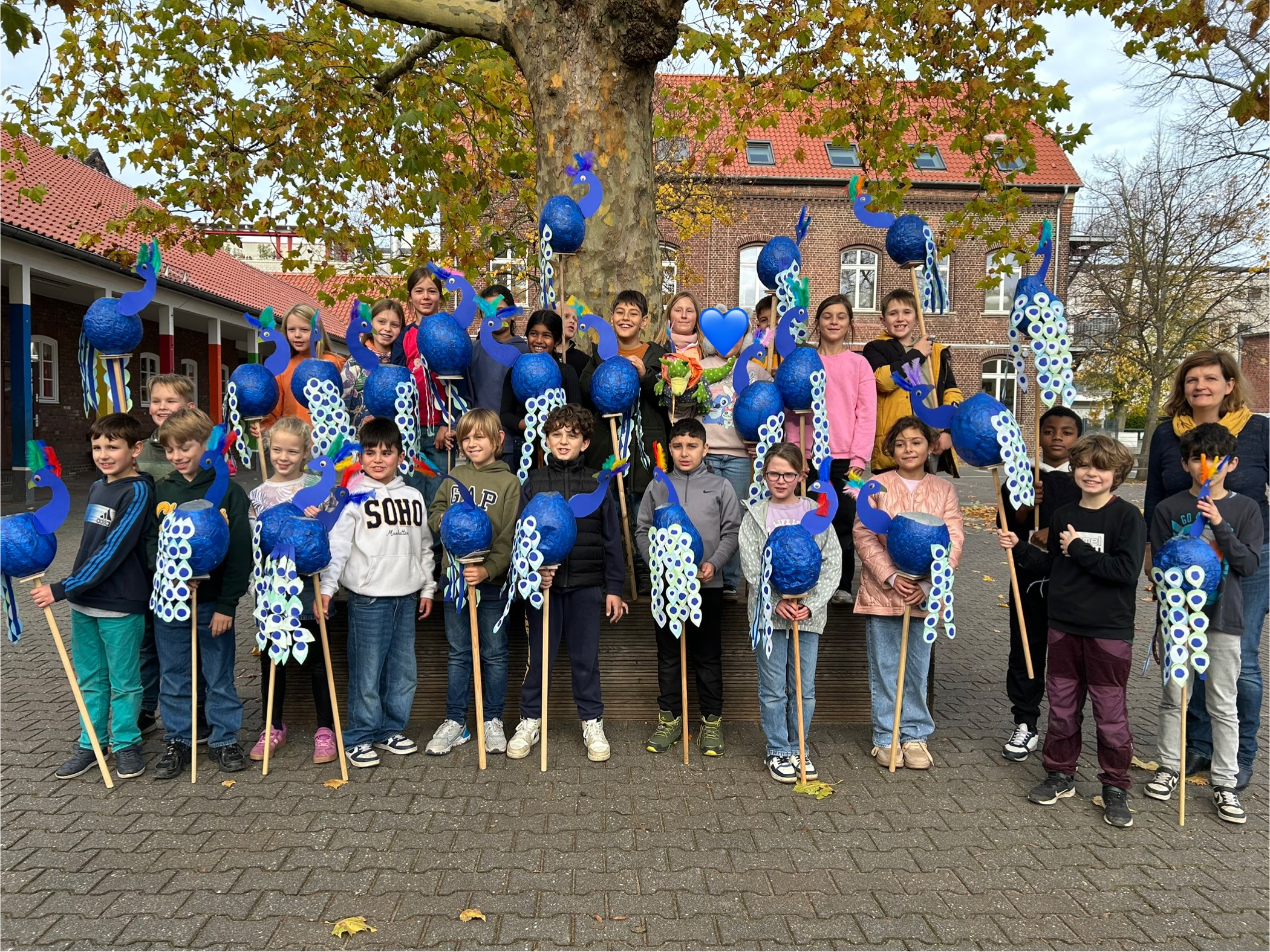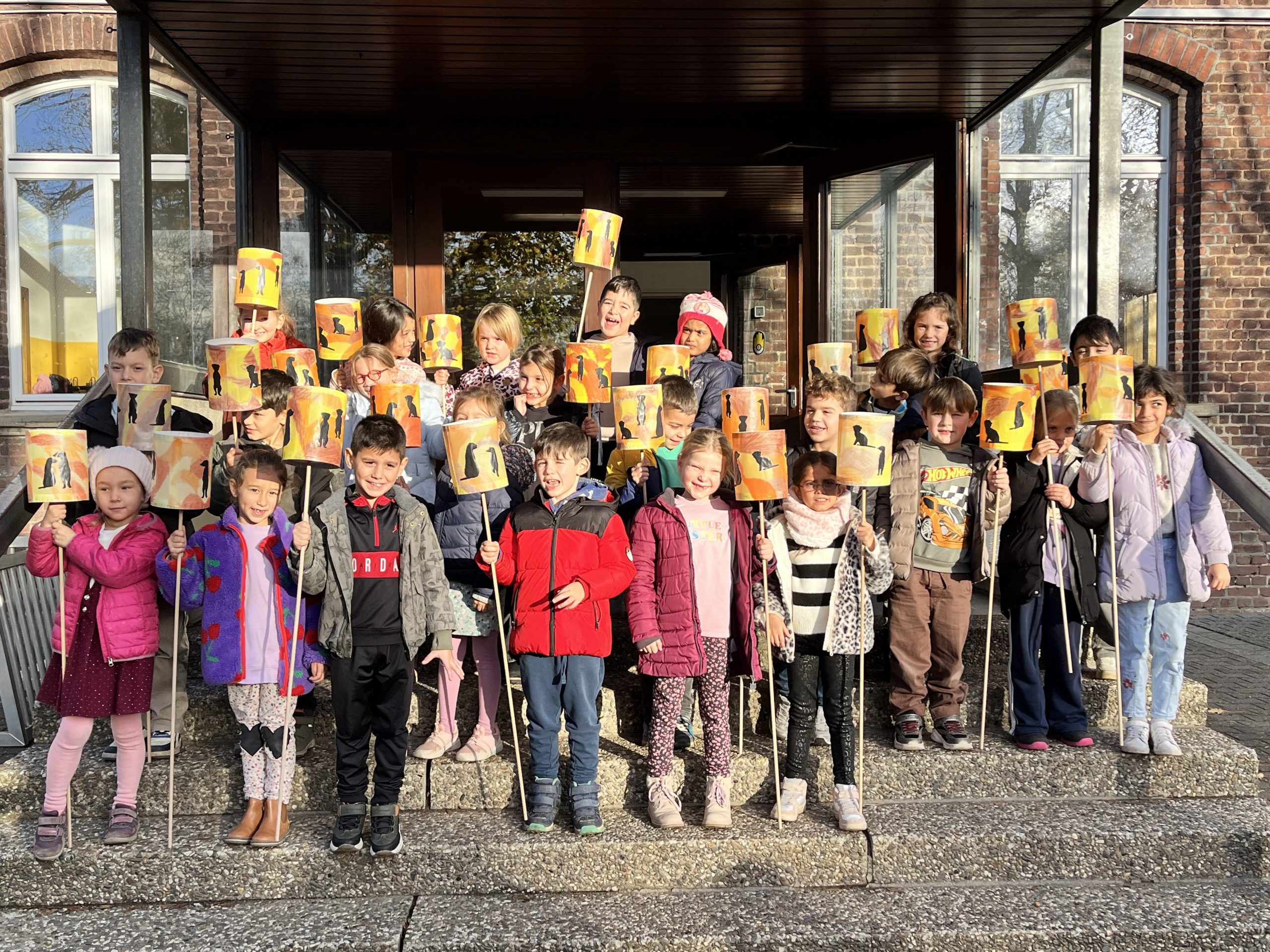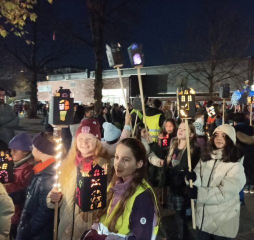 16 Klassen, 16 unterschiedliche Laternen. Unser bunter Martinszug zog hell leuchtend und singend durch Bockum. Zahlreiche Menschen – groß und klein – sorgten am Straßenrand für eine feierliche Atmosphäre.