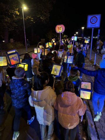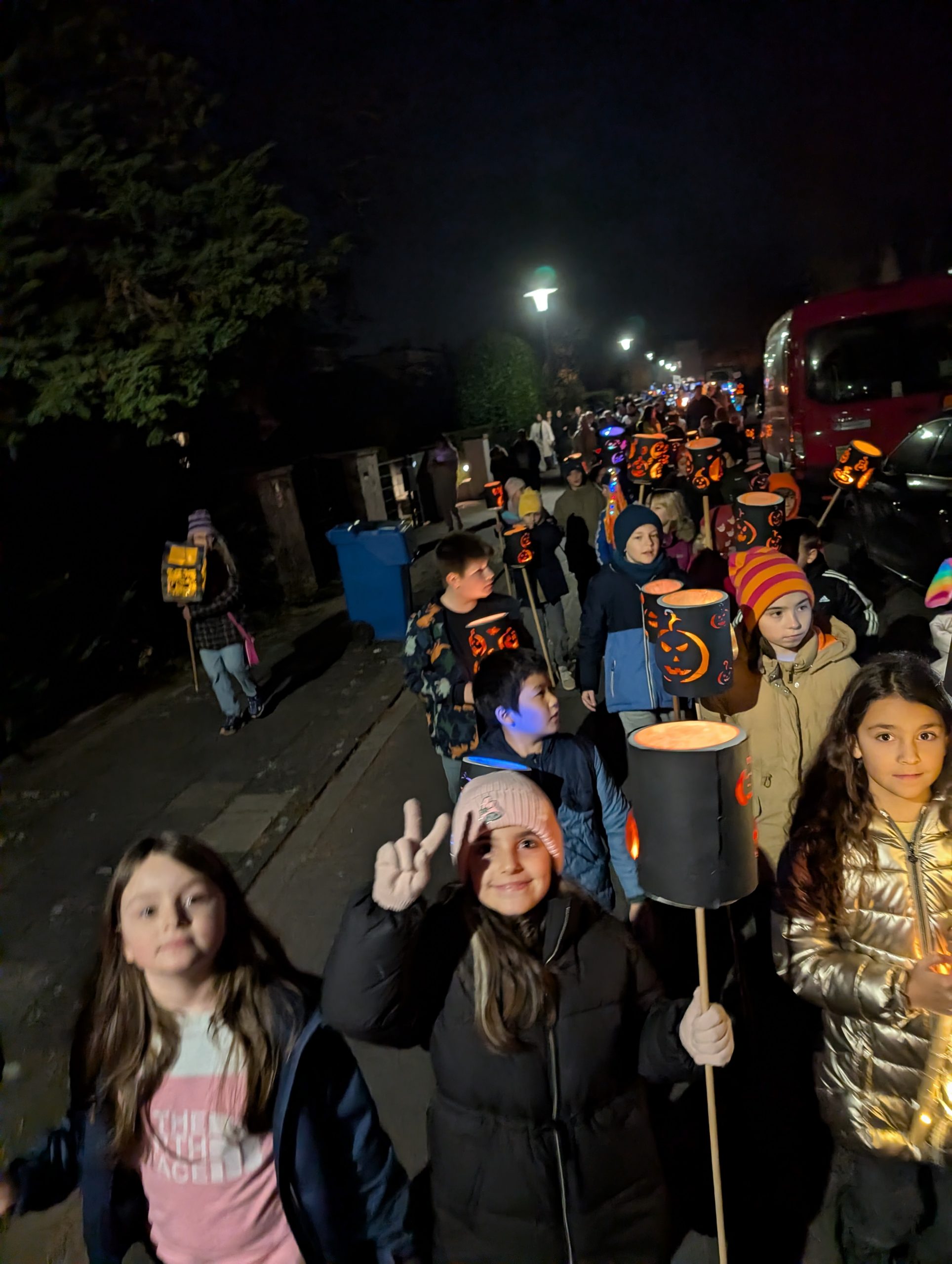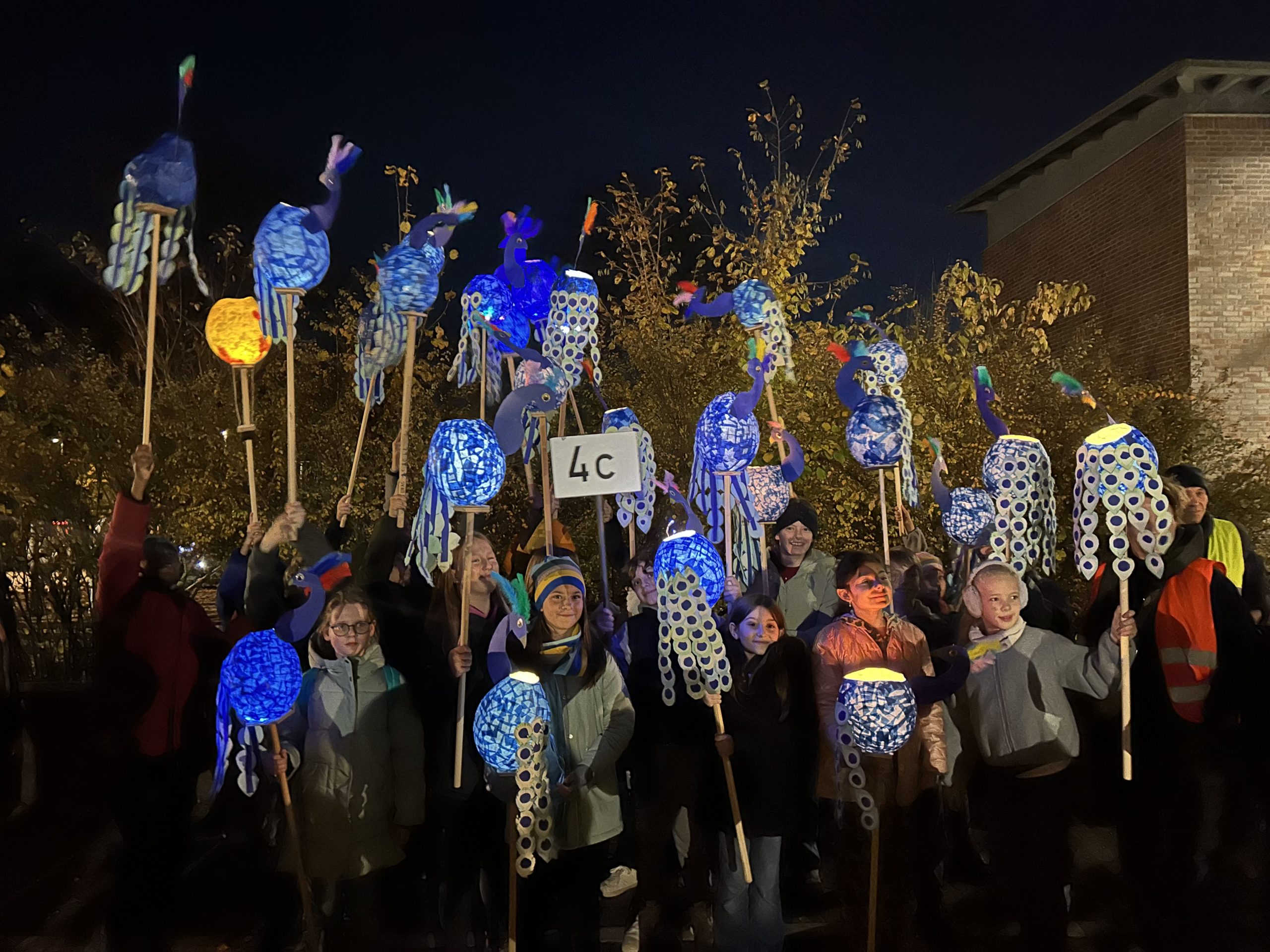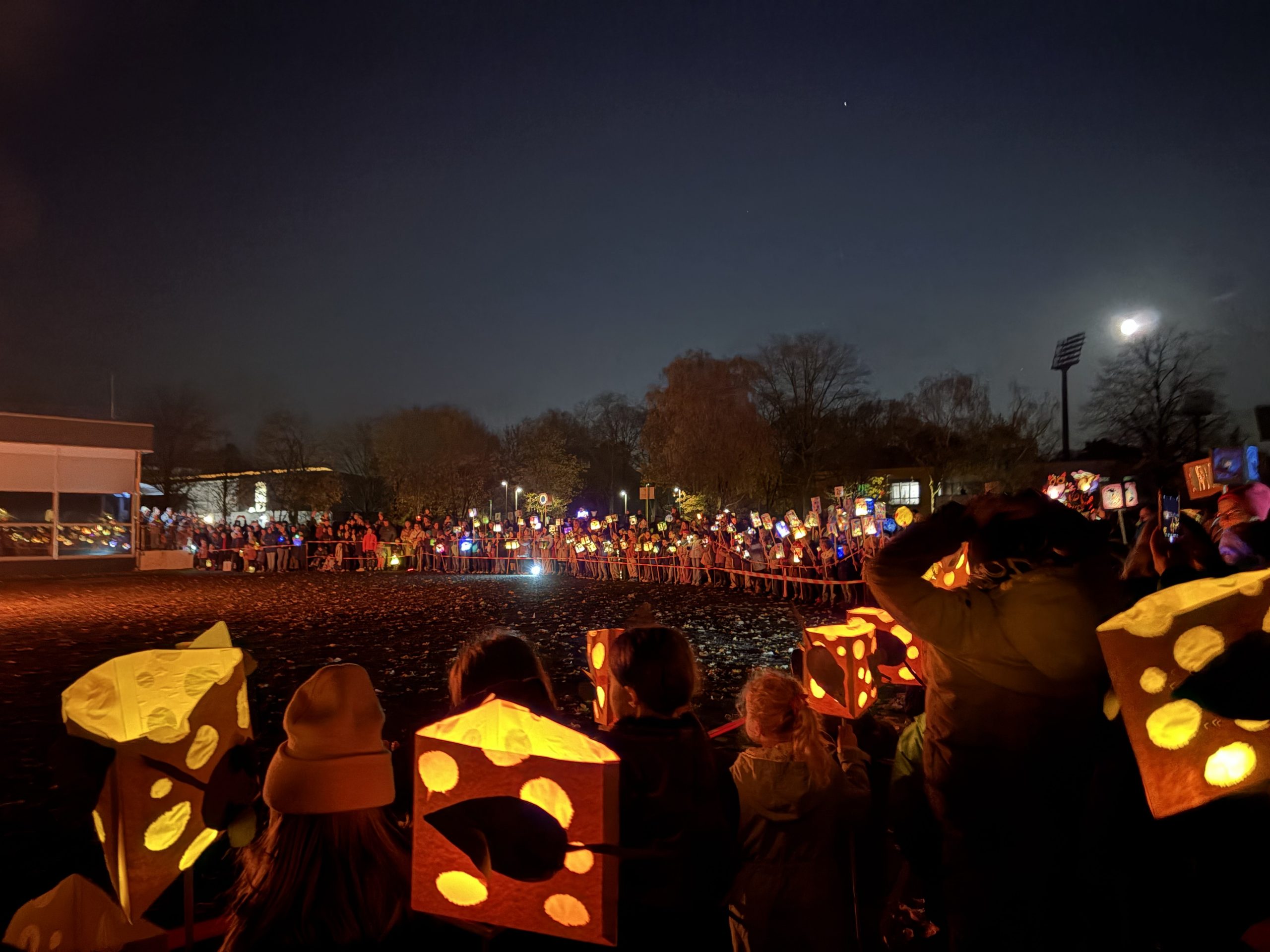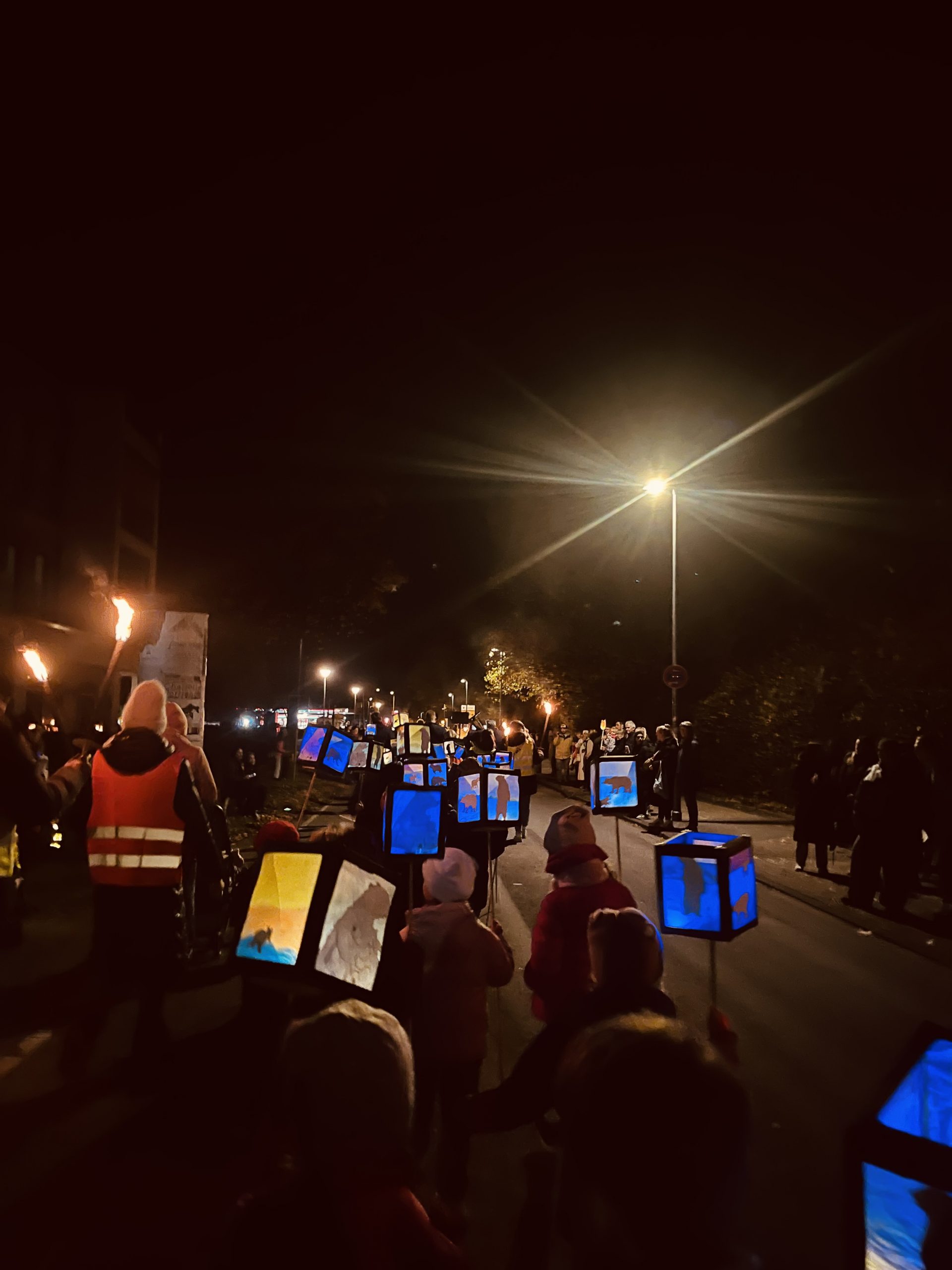 16 Klassen, 16 unterschiedliche Laternen. Unser bunter Martinszug zog hell leuchtend und singend durch Bockum. Zahlreiche Menschen – groß und klein – sorgten am Straßenrand für eine feierliche Atmosphäre.